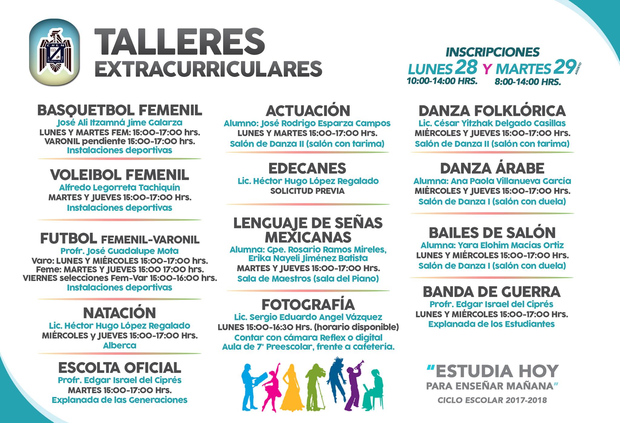 Leer más...Talleres Extracurriculares 2017 del semestre "A" que oferta el Departamento de Difusión Cultural y Extensión Educativa.